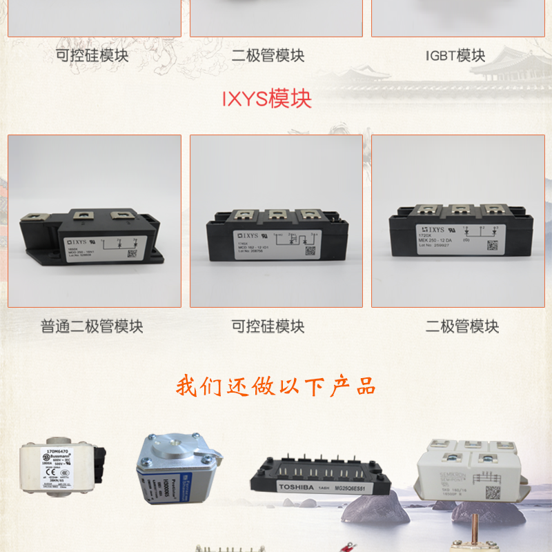 IGBT模块 可控硅模块 二极管模块 晶闸管 熔断器 保险丝